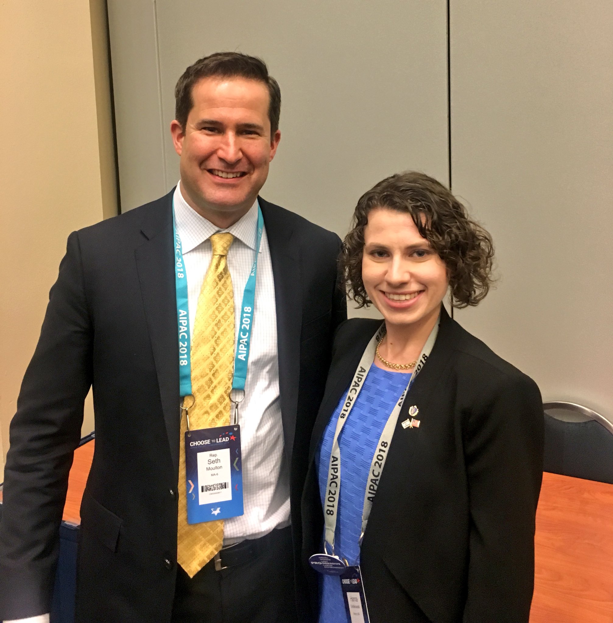 Tweet by Hanna Switlekowski Great to see fellow @MAYoungDems Congressman @sethmoulton @AIPAC discussing veteran issues related to Israel. #mapoli #Progressive #ChooseToLead (archive link)
