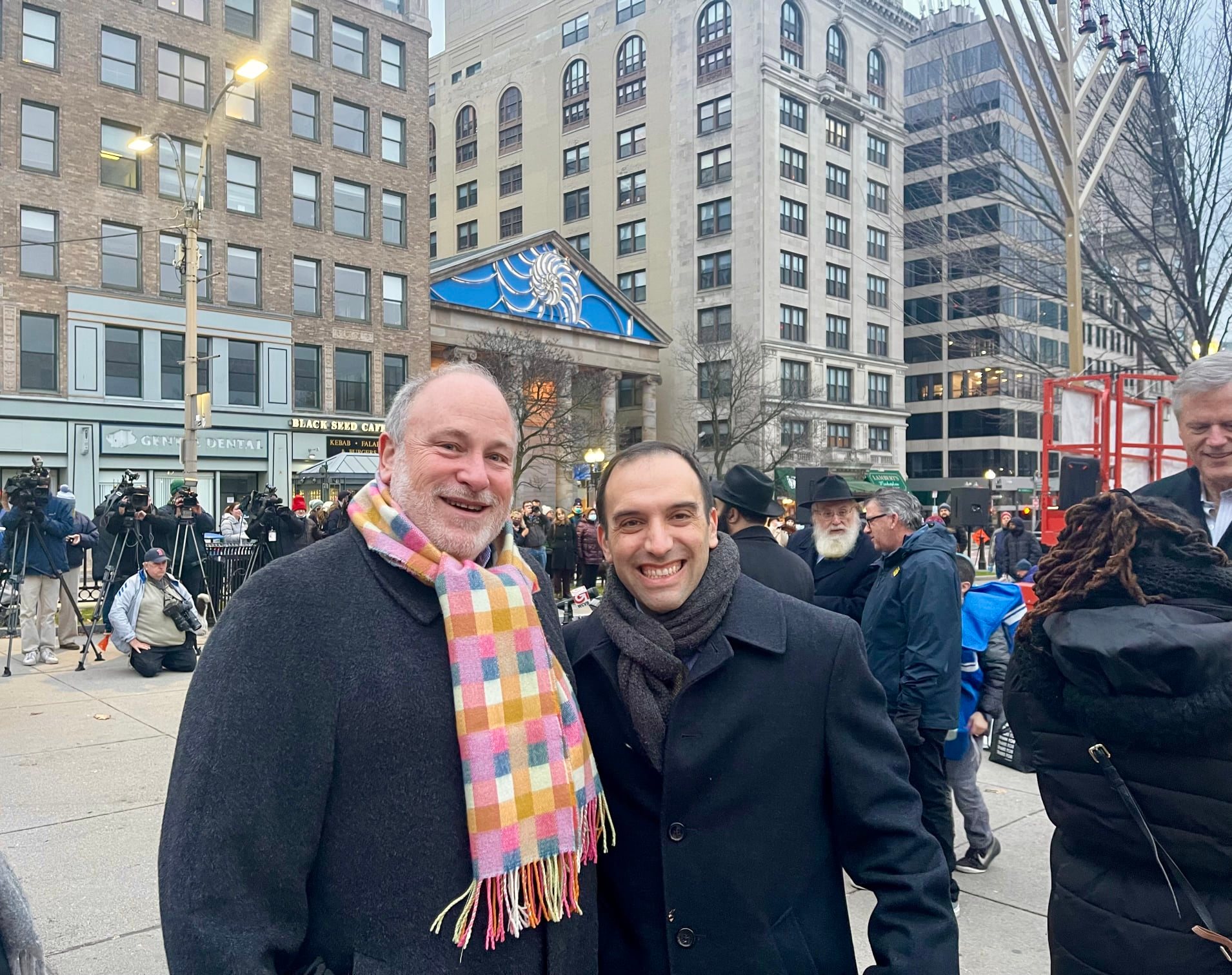 Menorah lighting ceremony attended by Israeli Consul General Meron Reuben and various politicans.
