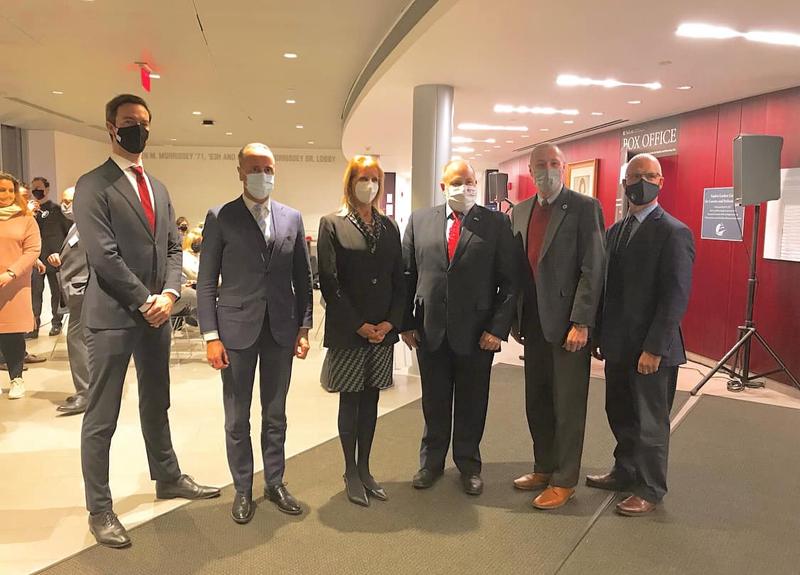 Essex DA Paul Tucker and State Senator Joan Lovely pose with Israeli Consul General Meron Reuben