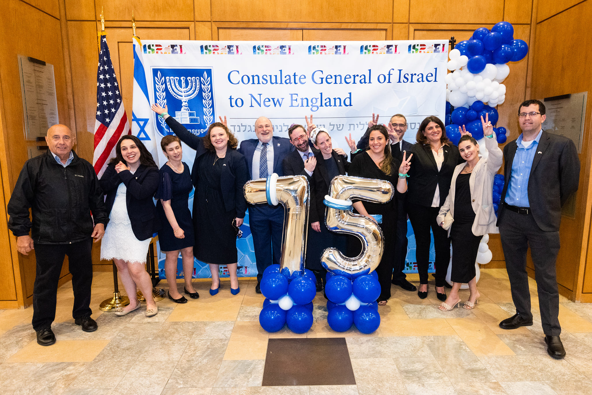 Facebook post by Aaron Saunders “It was an honor to celebrate the 75th anniversary of Israel’s Independence with Ambassador Meron Reuben, Consul General of Israel to New England…” (archive link)