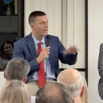 Screenshot from ICAN fireside chat livestream. Senator John Velis (left).