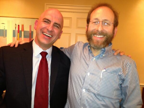 Harvard Provost Alan Garber (right) with Israeli Consul General Shai Bazak