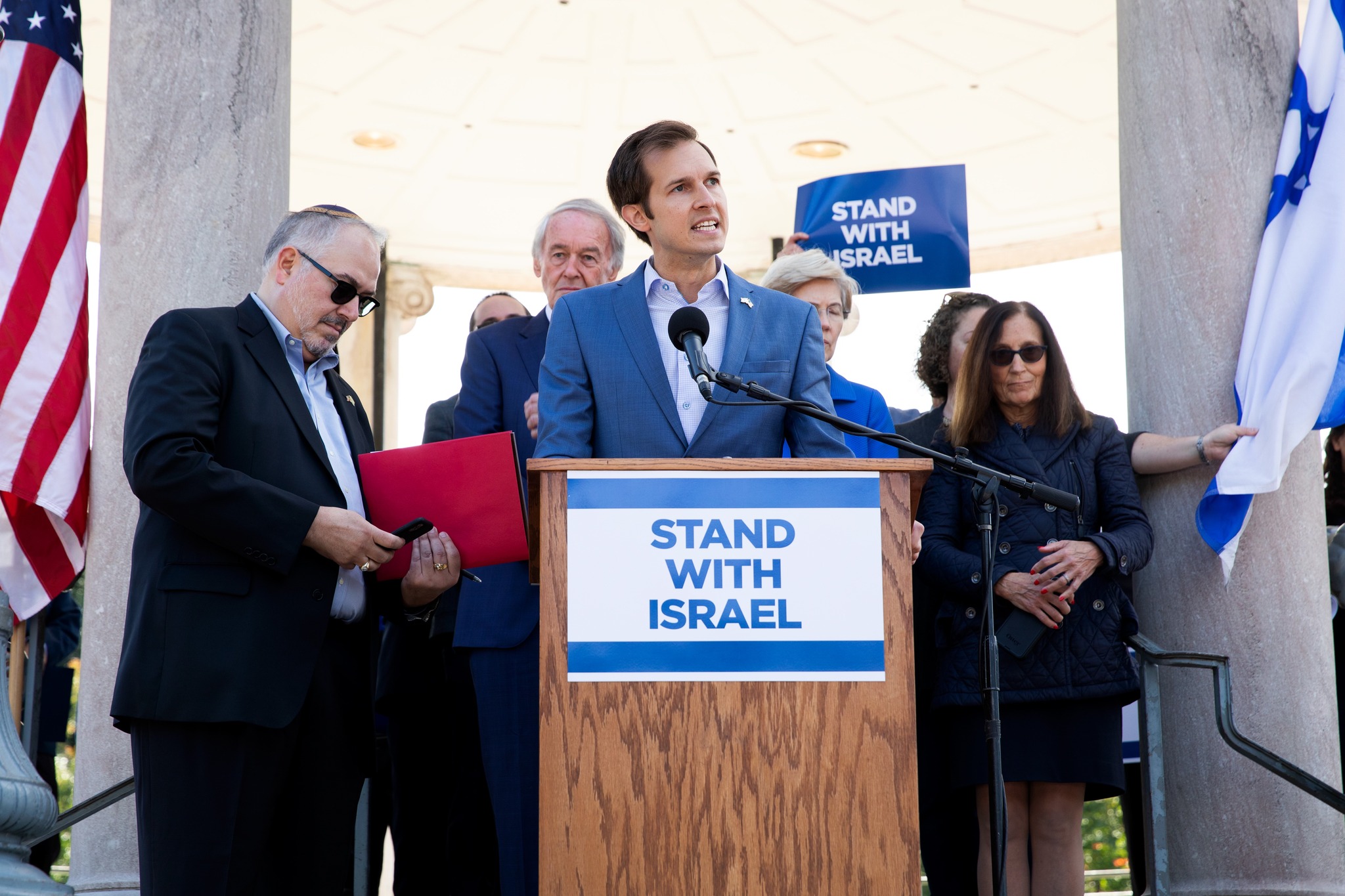 Pro-Israel event attended by Jake Auchincloss to mark the six month anniversary of October 7, 2023 |