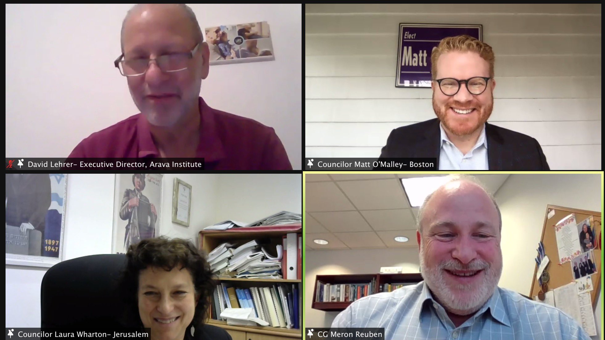 • Apr 22, 2021 Tweet by Matt O’Malley Celebrated #EarthDay with @AmbMeronReuben , Jerusalem Councilor @LauraWharton and @AravaInstitute with a fantastic panel discussion on the impacts of climate change on our cities and strategies to address them @IsraelinBoston (archive link)