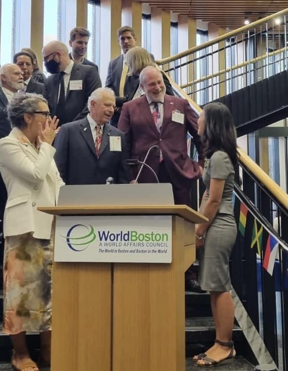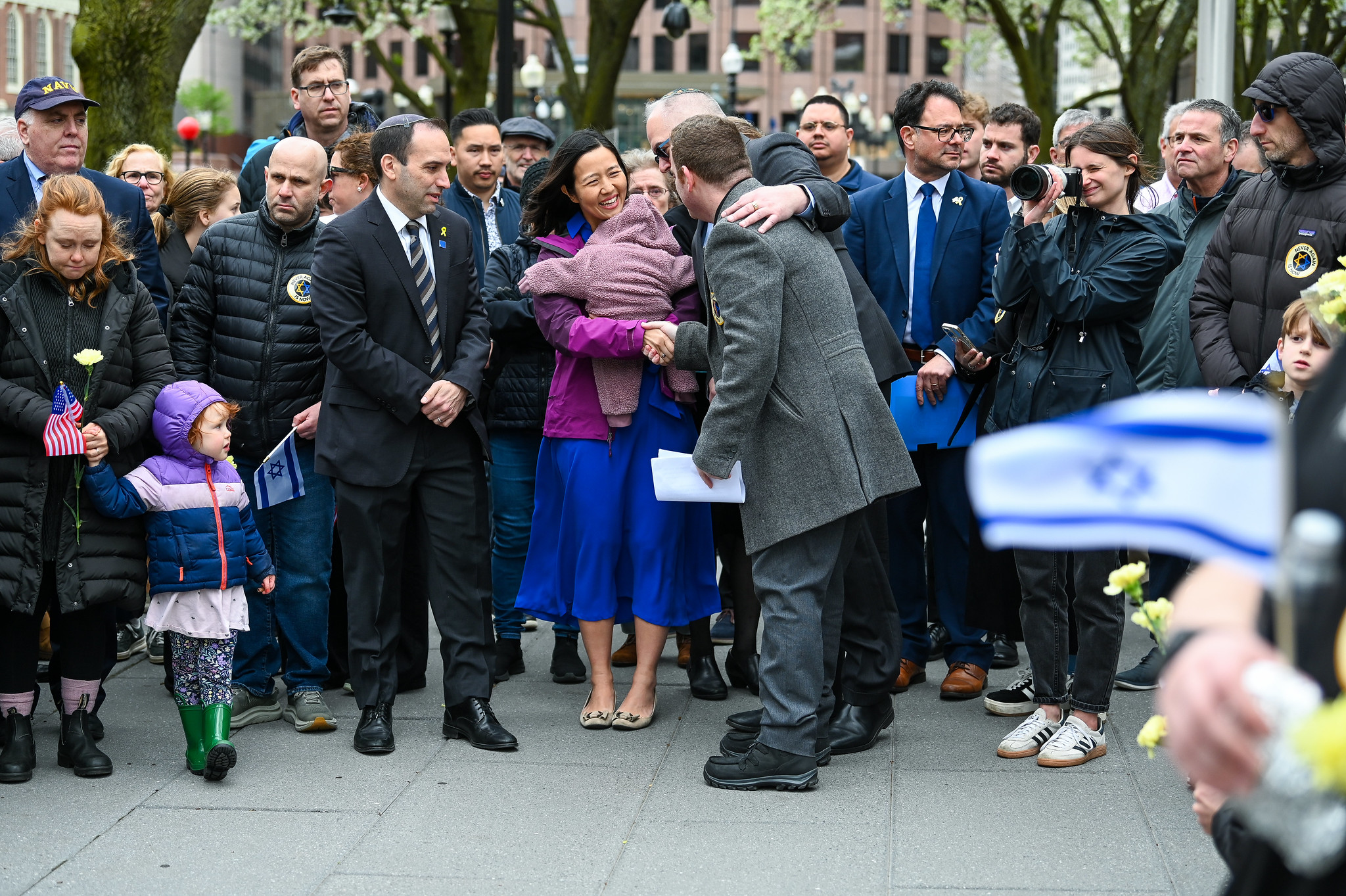 Israeli flag raised at Boston City Hall to celebrate Israel's Day of Independence (Yom Ha'atzmaut) and attended by Mayor Wu |